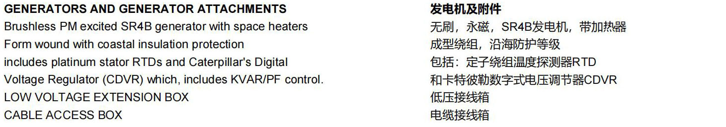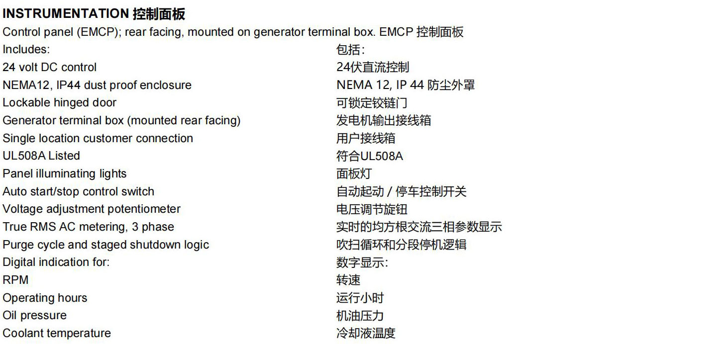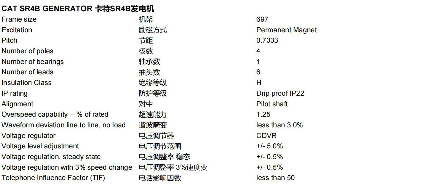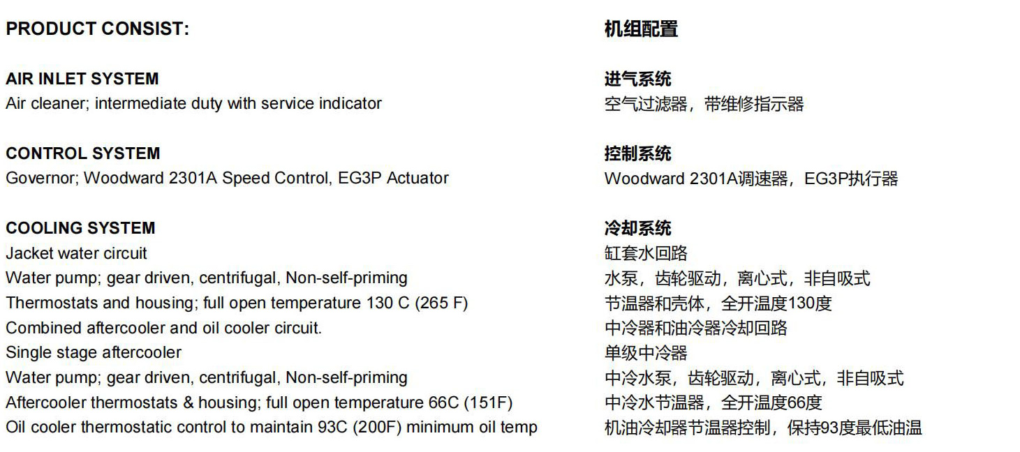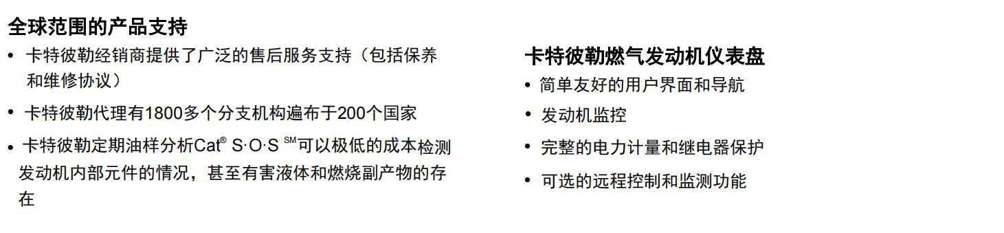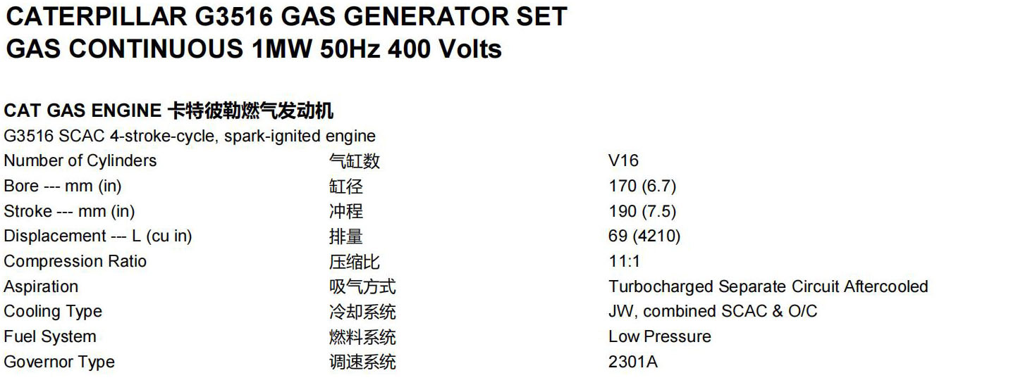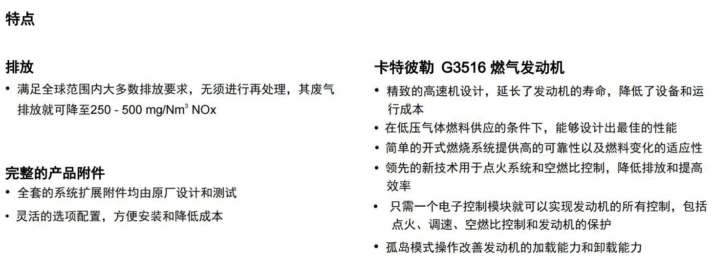 1000KW燃气发电机组G3516燃气发动机满足全球范围内大多数排放要求,无须进行再处理,其废气排放就可降至250-500mg/Nm³NOx。精致的高速机设计,延长了发动机的寿命,降低了设备和运行成本,在低压气体燃料供应的条件下,能够设计出最佳的性能。简单的开式燃烧系统提供高的可靠性以及燃料变化的适应性。领先的新技术用于点火系统和空燃比控制,降低排放和提高效率。只需一个电子控制模块就可以实现发动机的所有控制,包括点火、调速、空燃比控制和发动机的保护。孤岛模式操作改善发动机的加载能力和卸载能力。电机的设计符合卡特彼勒燃气发动机的性能输出特性,行业中领先的机械和电气设计,更高的效率。卡特彼勒燃气发动机仪表盘拥有简单友好的用户界面和导航,发动机监控,完整的电力计量和继电器保护,可选的远程控制和监测功能。